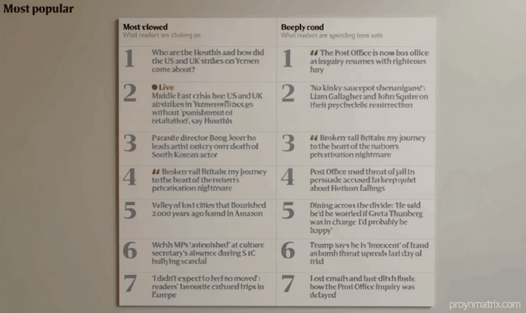 The ‘Deeply read’ list prioritizes attention time, showcasing a broader array of journalism that captivates readers for longer. It’s displayed on regional homepages, tailored to reflect local interests.